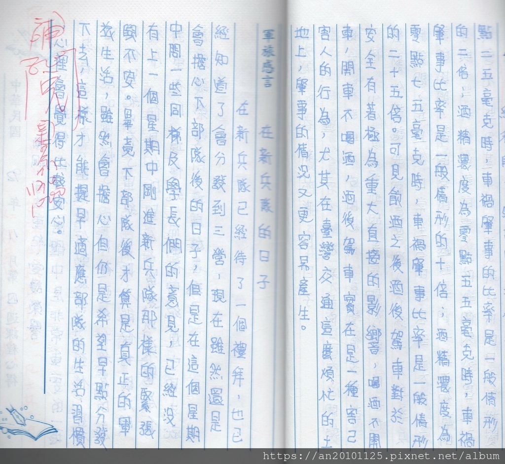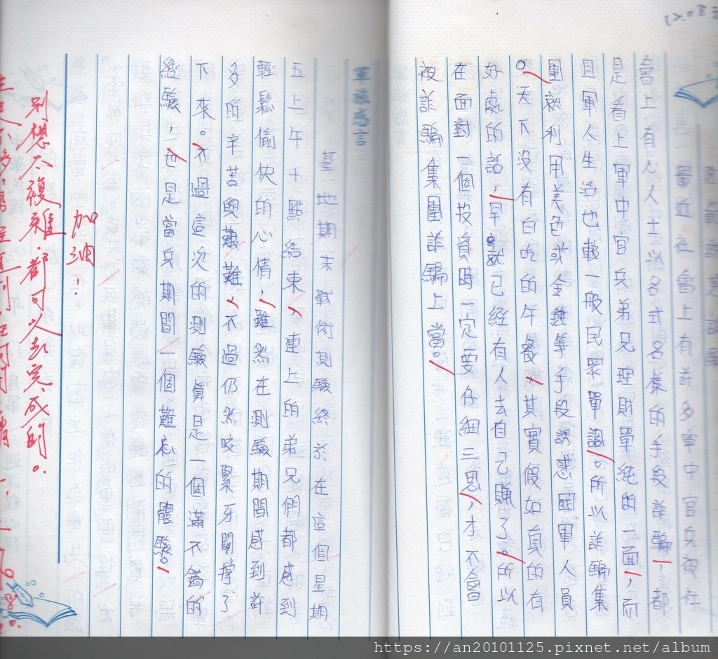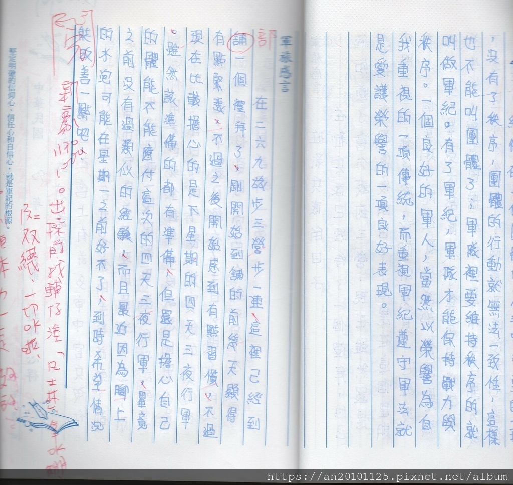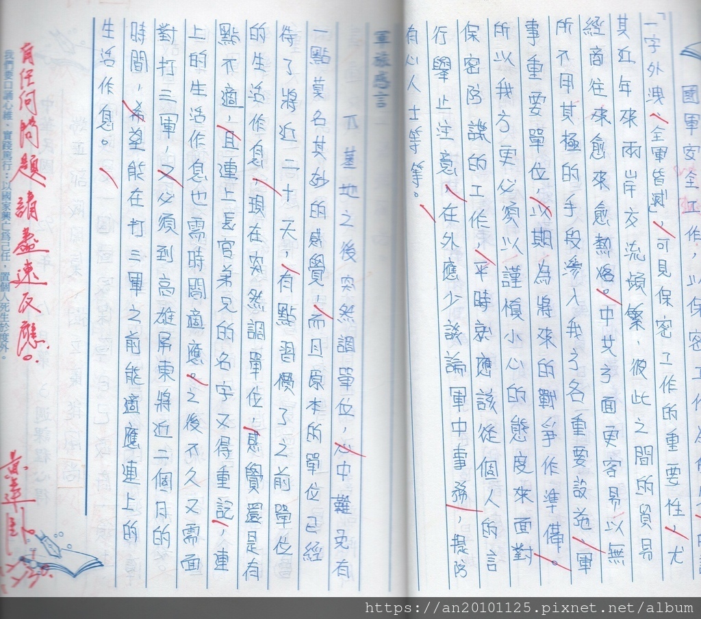 副連長改莒光週記.倒是第一次聽見.是連輔導長請假不在嗎?